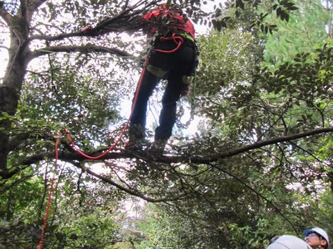 その様なケースの場合には、例えば一本ハシゴで枝まで登って行き、あとは枝伝いに登っ